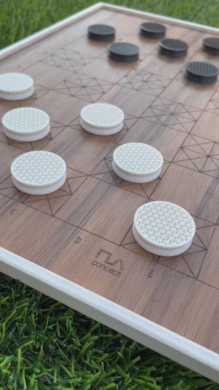 PLA Checkers is handmade in sunny San Diego, California. This checkers set has a sleek, sophisticated appearance, putting a modern twist on a traditional game.