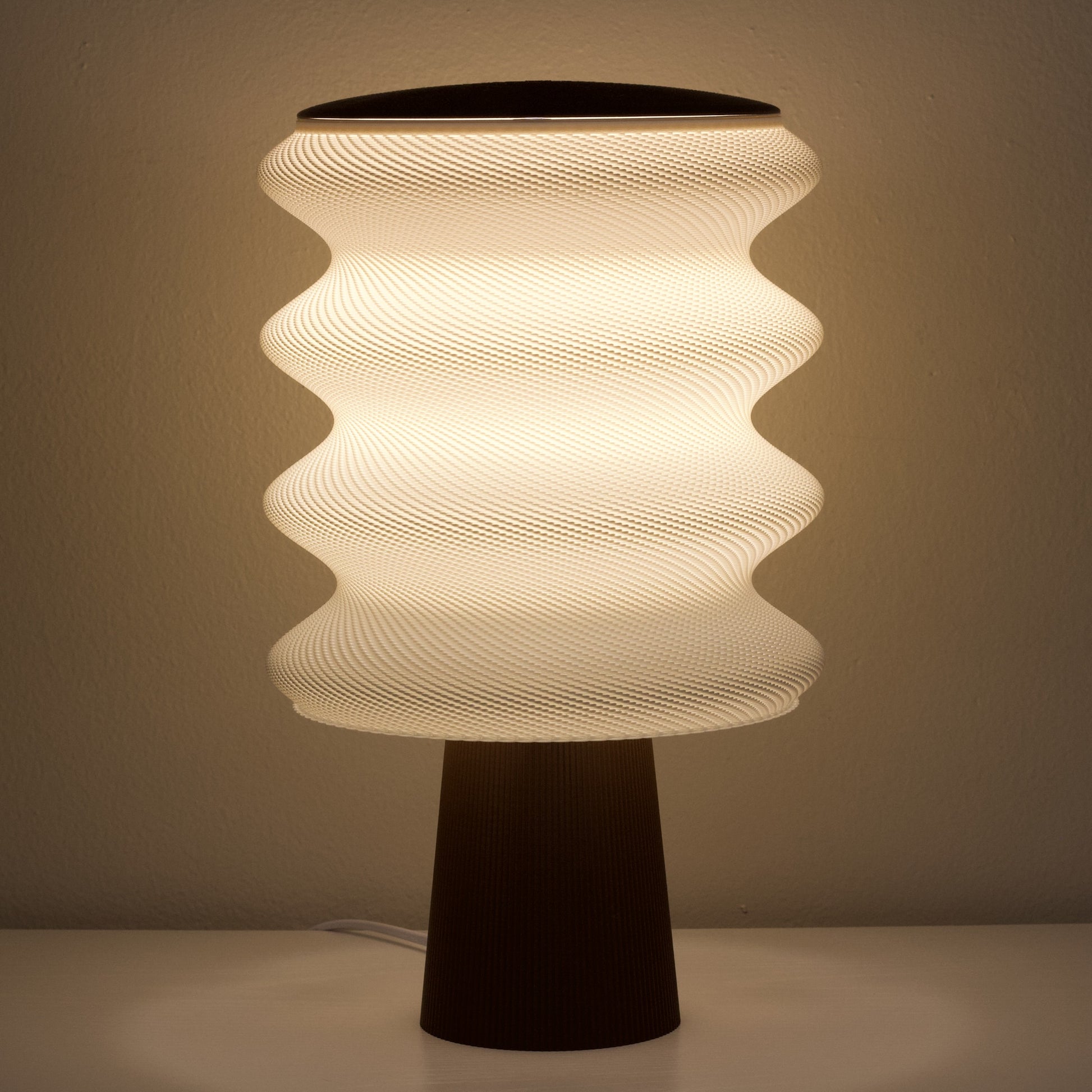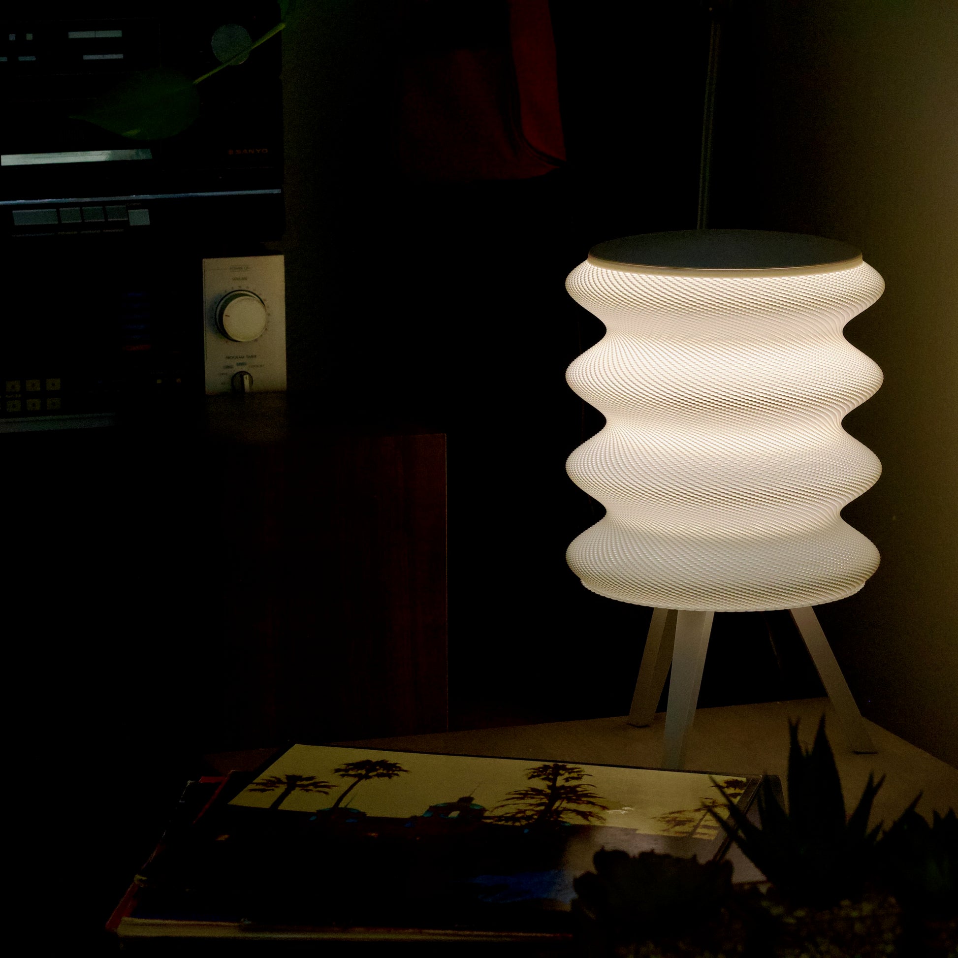 Each lamp is thoughtfully crafted with interchangeable parts: use classic legs or a tapered cylinder as the base, or remove the base entirely to hang Ripple as a pendant lamp. Its versatility makes it a functional statement piece for bedrooms, living rooms, or studios.